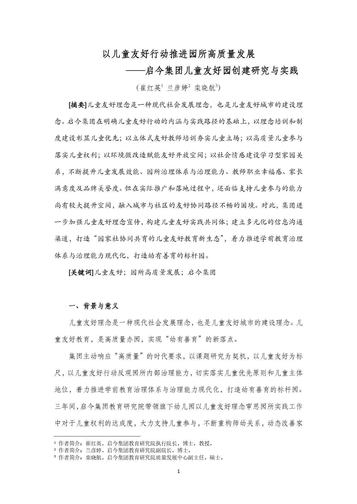 以儿童友好行动推进园所高质量发展——启今集团儿童友好园创建研究与实践