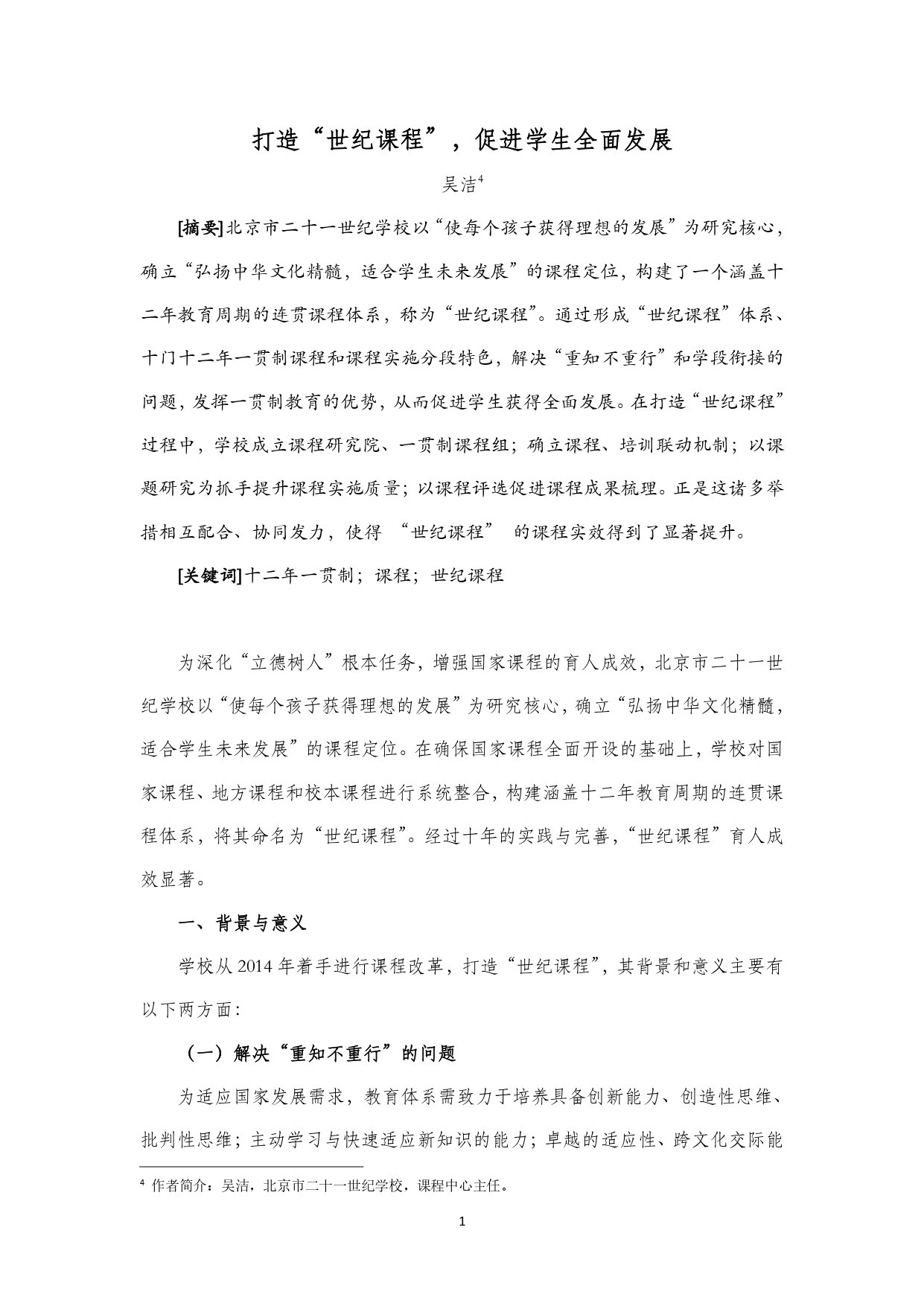 打造“世纪课程”,促进学生全面发展——北京市二十一世纪学校