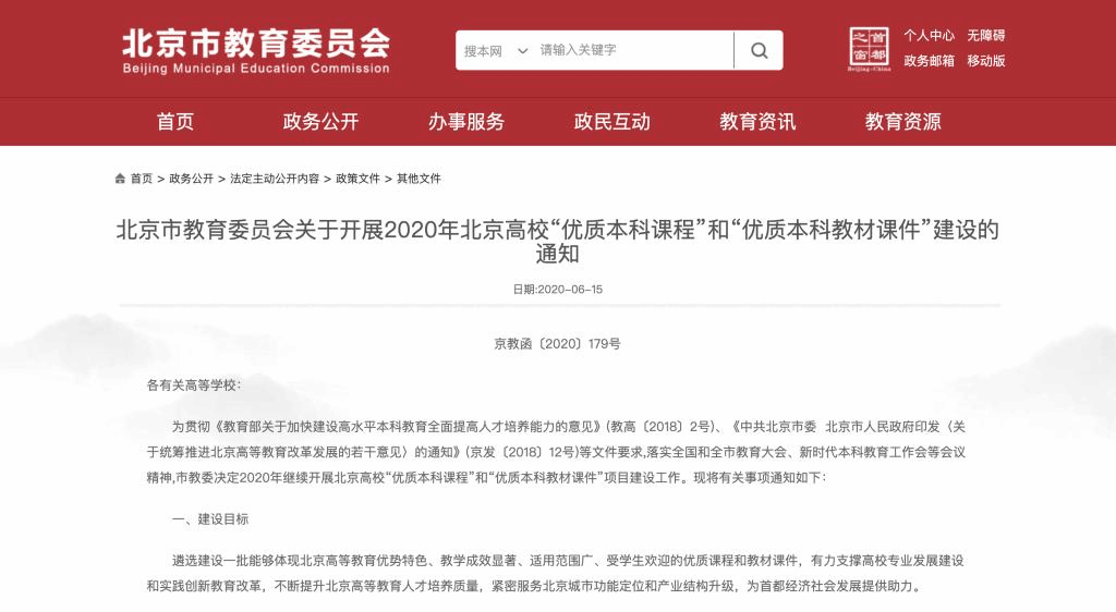 近日,北京市教委发布《关于开展2020年北京高校“优质本科课程”和“优质本科教材课件”建设的通知》。《通知》具体有哪些内容?随小编一起看全文↓↓↓