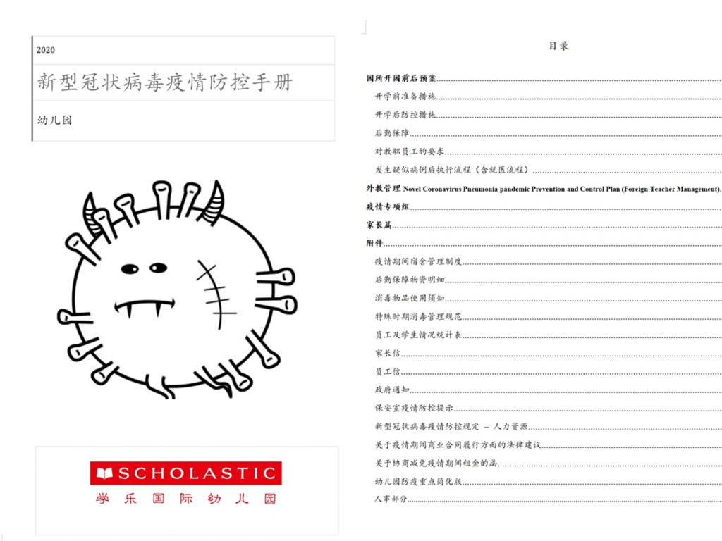 为全力做好新型冠状病毒感染的肺炎疫情防控工作,根据国家及北京市下发通知,学乐幼儿园结合园所特点,从后勤管理、人力资源、法律法规、外教管理及家园共育等方面,准备出了一整套完善的《新型冠状病毒疫情整体防控方案》,针对疫情进行了一系列防控措施:
