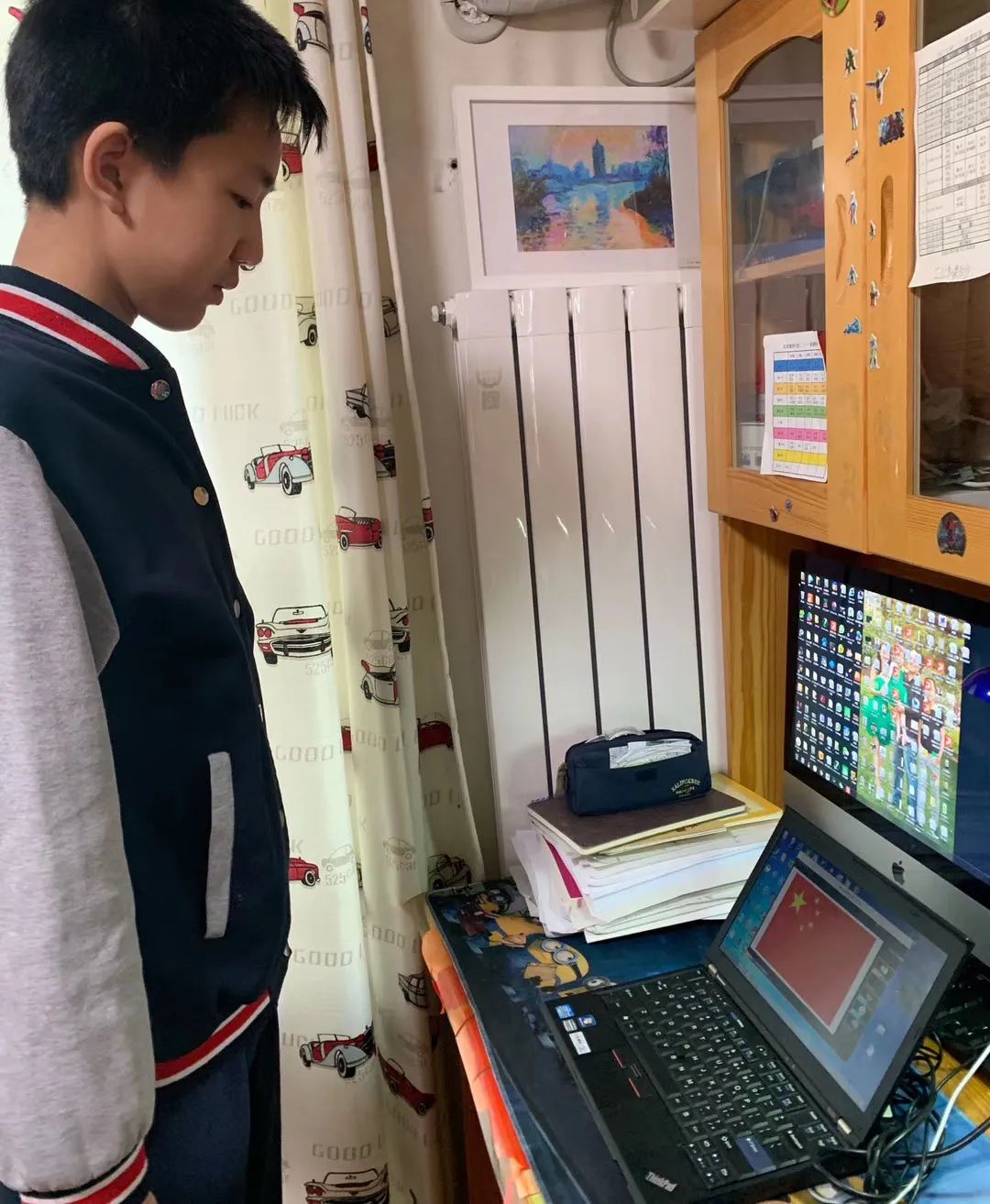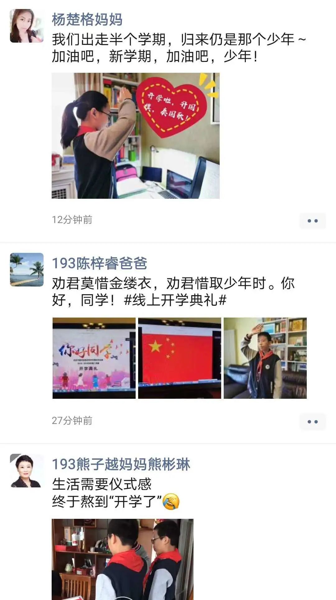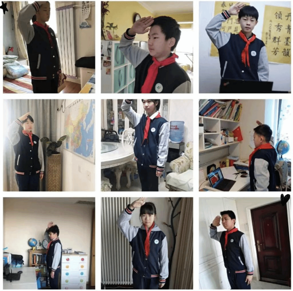 4月13日,初高中各学部共同举办了仪式感满满的春季学期起始仪式。全体学生着校服、少先队员佩戴红领巾,早早地等待在家里的书桌前。早上7:35,在庄严的五星红旗前、在激昂的国歌声中,同学们全体起立,像曾经每周一清晨在学校里那样,唱响了嘹亮的国歌。尽管身边没有同学和老师,尽管面对的只是小小的屏幕,但同学们身姿挺拔、眼神坚定、歌声嘹亮,家长老师无不感到感动和欣慰。从一张张照片中,我们看到的不仅仅是一场仪式,更多的是孩子们的成长。相信这场特殊的典礼会成为同学们难以磨灭的记忆。