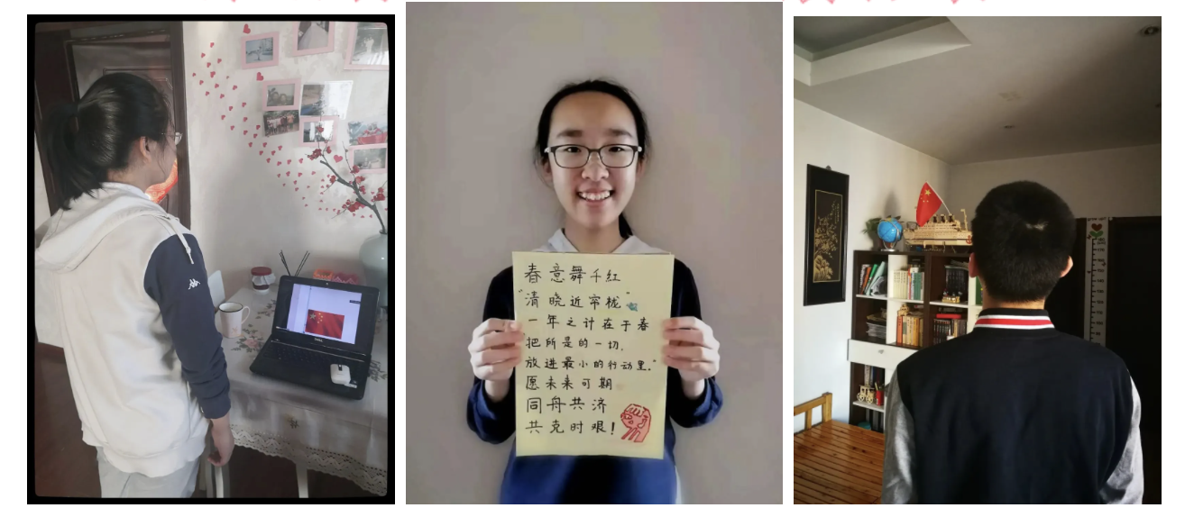 高中部学生还精心准备了给同学们的寄语,四高二(1)班自制了线上升旗仪式的视频,迎接新学期的到来。