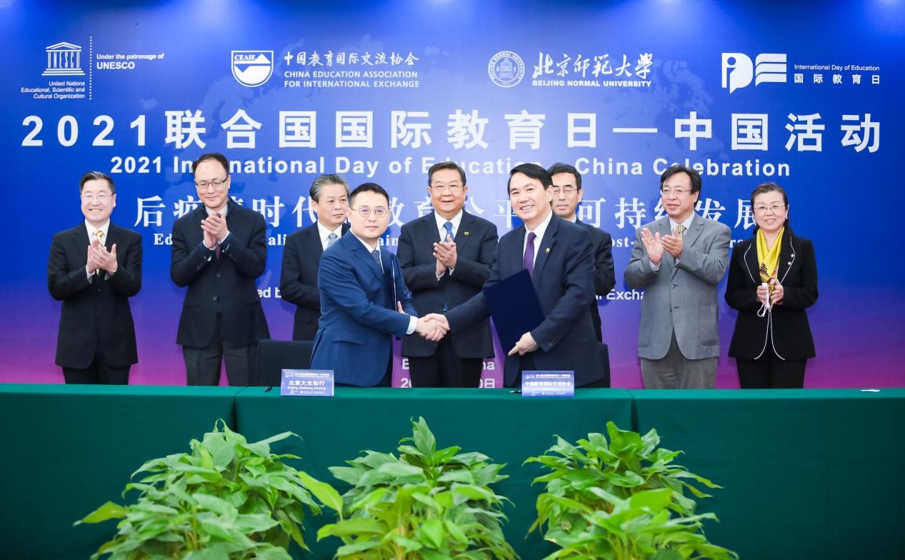 签约仪式在“2021联合国国际教育日—中国活动”期间举行。此次活动以“后疫情时代的教育公平与可持续发展”为主题,推动后疫情背景下边缘化群体包括贫困家庭和农村地区学童、妇女和残障学生的教育公平,促进各国相互学习、相互借鉴,构建应对未来危机的教育共同体。