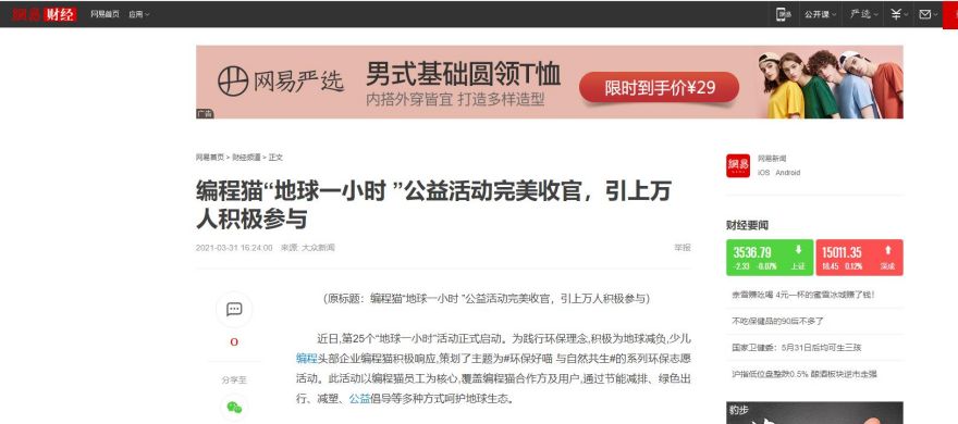 编程猫“地球一小时 ”公益活动完美收官,引上万人积极参与(网易财经)