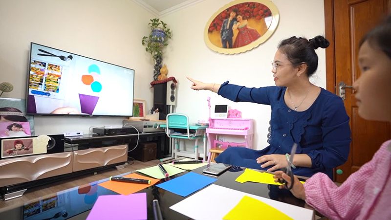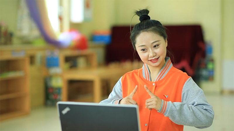 红黄蓝幼儿教师在疫情期间,在为孩子们上直播互动课。