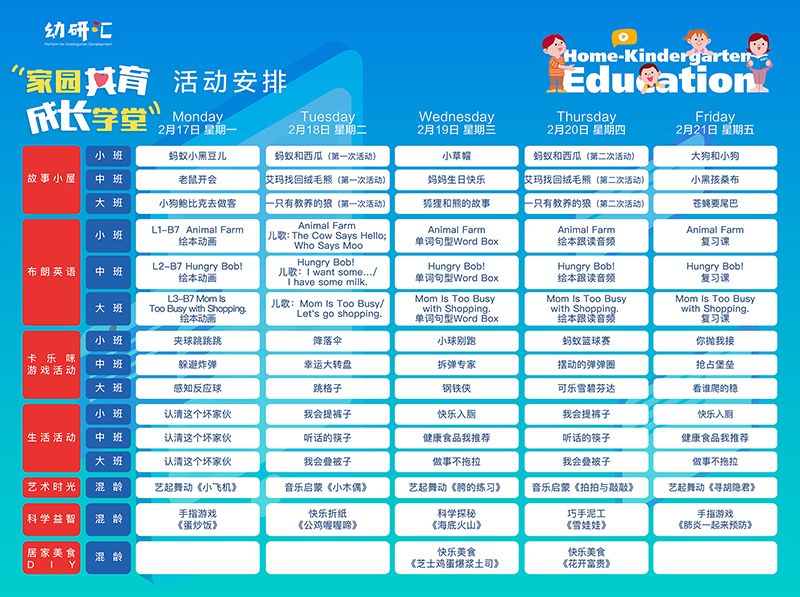 红黄蓝幼儿园“共育成长学堂”课表。
