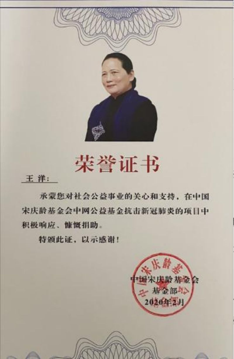 2020年新冠疫情期间,集团董事长王洋积极响应党和国家号召,带领全体精诚人齐心抗疫,通过宋庆龄基金会、中网爱心基金积极捐助50余万元抗疫物资。