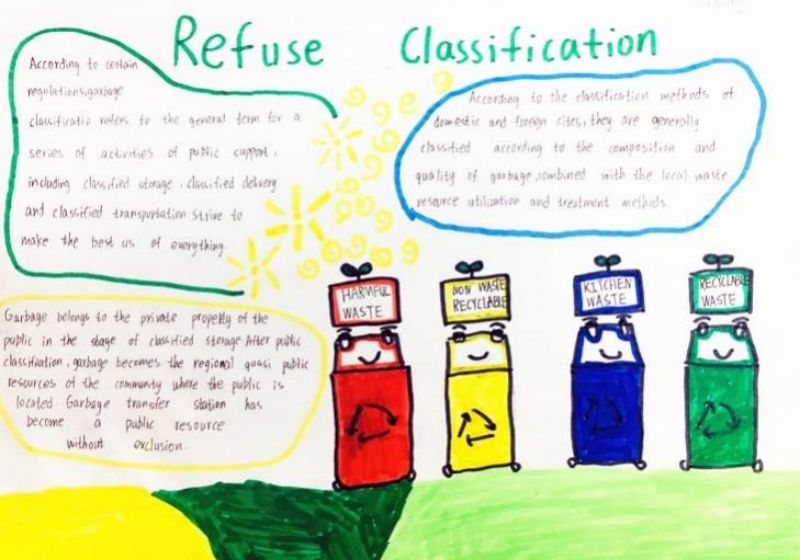 活动中,孩子们发起倡议书,呼吁更多的人加入到垃圾分类的队伍中来;制作垃圾分类索引表和宣传小报,帮助更多的人识别垃圾类别,宣传公益正能量;变废为宝用废弃的物品利用加工,让资源循环利用;老师们也积极加入到了此项公益活动中,他们利用各种素材精心创作出一张张有关垃圾分类的绘画作品,参加社区“垃圾分类”职守活动,以榜样的力量带动孩子们加入到“垃圾分类”中来。学校积极开展各类有关垃圾分类的公益讲座,利用“世界环境日”等主题日进行广泛宣传,为孩子们更好地践行垃圾分类起到了积极的宣传促进作用。