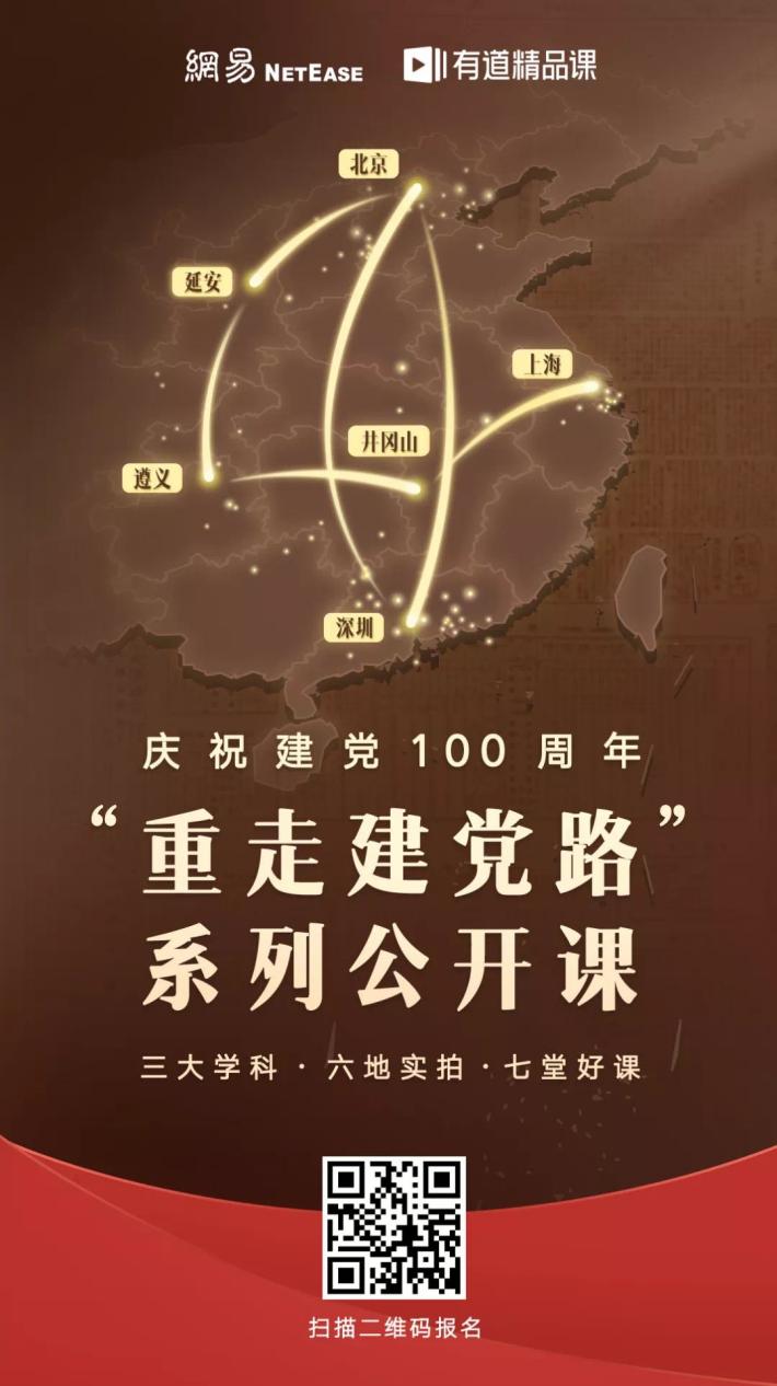 网易有道始终致力于教育普惠,打造了系列主题公开课,面向社会公开免费观看,包括与清华大学积极心理学团队合作的心理健康课程,青少年素质课程(美术、编程、围棋)等。近期,为庆祝中国共产党成立100周年,网易有道旗下有道精品课又推出“重走建党路”主题公开课。该系列课程由延安大学马克思主义学院指导,有道精品课的六位主讲老师采用实地教学方式,带领学生跨越百年历史,重走建党路,从上海一大会址出发,途径井冈山、遵义、延安、北京、深圳,通过参观博物馆、讲解老照片、探访战役旧址等方式,为同学带来七堂中学历史、语文和地理课程,旨在提高学生历史人文素养的同时,激发学生的爱党、爱国热情。