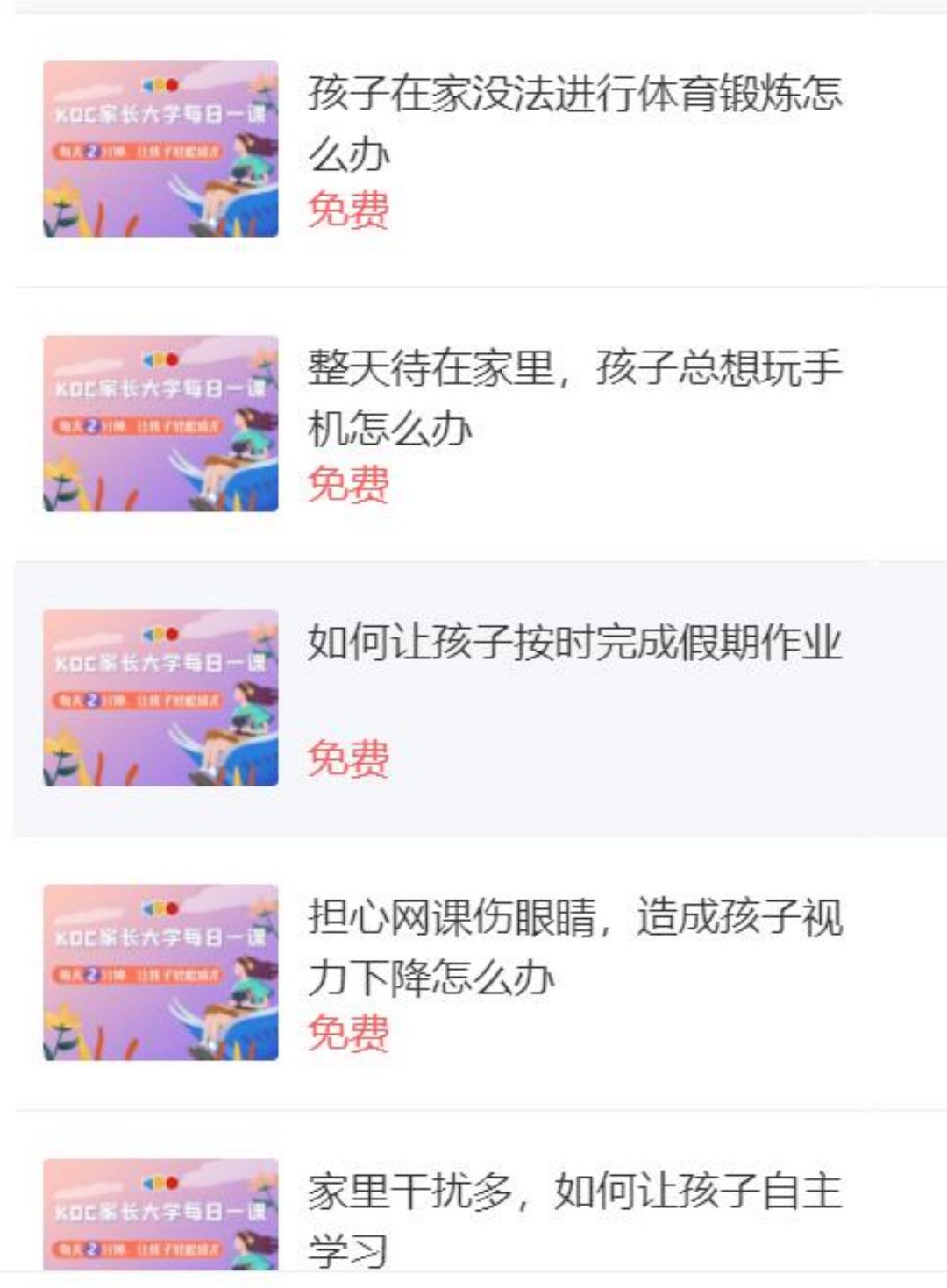 公益课程中设有疫情专题,告诉大家隔离期间如何做到“不焦虑”;如何引导孩子正确认识生命;提高孩子在家学习的主动性;保障网络学习的效率;用游戏的方式让孩子了解与预防新冠状病毒,包括面对重大疫情,应该如何正确应对孩子的恐慌等短音频课,让家长和孩子能从容面对疫情。